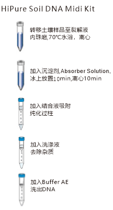 HiPure Soil DNA Midi Kits是专门为土壤DNA提取而设计的。试剂盒采用硅胶柱纯化技术,并结合独创的腐殖酸吸附剂技术,适合于从3~5g各种土壤,如森林土壤,草地土壤,矿区土壤,底泥等样品中提取高产量高纯度的总DNA。腐殖酸吸附剂可高效地吸附土壤样品中的腐殖酸和其它抑制因子,纯化的DNA可直接用于PCR、Southern 杂交、酶切等实验。